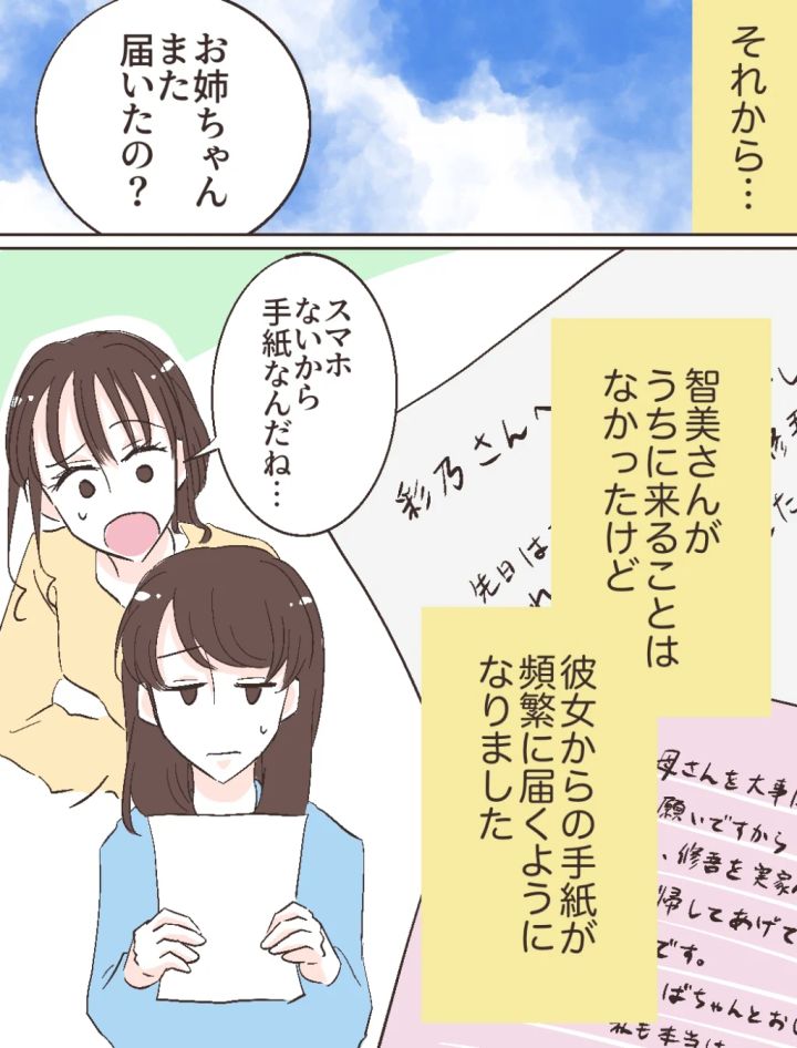その後、智美さんがうちに来ることはありませんでしたが、頻繁に手紙が届くようになりました。智美さんはスマホを持っていないので手紙を送ってくるのでしょう。手紙の内容はいつも同じで「お母さんを大事にして」「修吾をこっちに帰してあげて」というものでした。