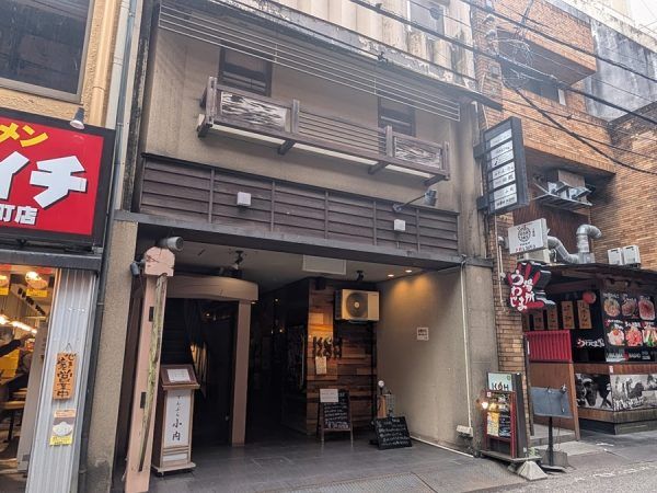大街道から二番町を西向いて歩きます。 最初の角を左に曲がります。 70mほど南へ直進するとある茶色のビルにお店があります。