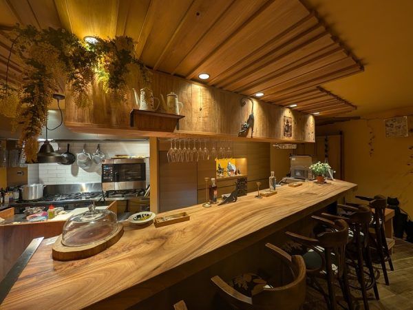 店内に入るとお洒落な空間。 特にカウンターの上はミモザが飾られていて春を感じちゃいます。 広々としたカウンターで調理風景を眺めながら食事を楽しめそう♪