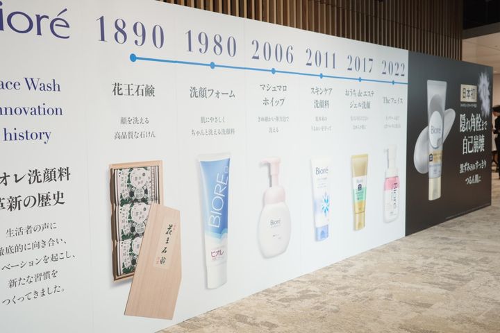 1890年に「花王石鹸」からスタートした花王。1980年には当日珍しかったペースト状の洗顔料「ビオレ 洗顔フォーム」を発売し、その後も2006年の「ビオレ マシュマロホイップ」。2017年の「ビオレ おうちdeエステ」など、「顔を洗う」ことを見つめ続け、洗顔カテゴリーにイノベーションを起こし続けてきました。