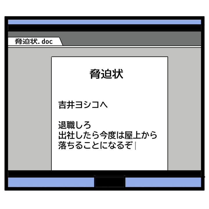 「脅迫状」の題名をちゃんと中央寄せにしていることから事務スキルが上がっていることはわかりますが、根本的なところは成長していないようで…。