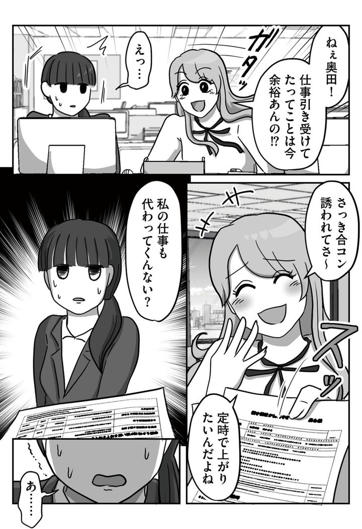 「合コン誘われてさ~」定時で帰るために同期をこき使う