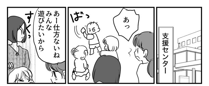 支援センターで私の子どもとチヒロちゃんの子どもがブロックで遊んでいるとき、他の子がブロックを持っていってしまったことがありました。そのせいで、私の子どもが泣いてしまいます。そんなときもチヒロちゃんは、相手の親のところまで行って注意してくれました。