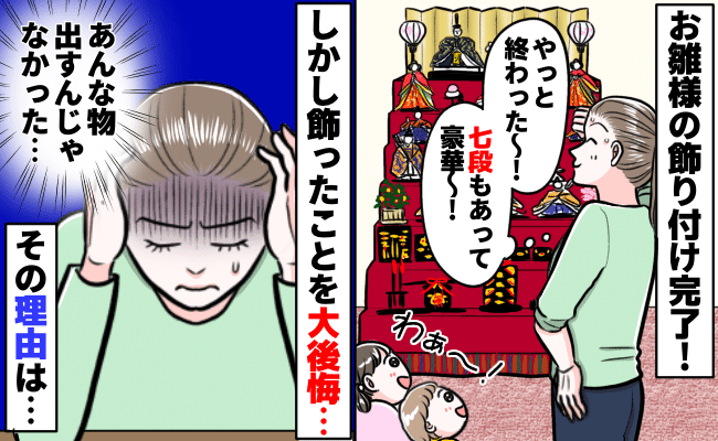 「大満足!」数時間かけ7段のお雛様設置完了。やめてー!翌年から13年間…飾らなくなったワケ!実は