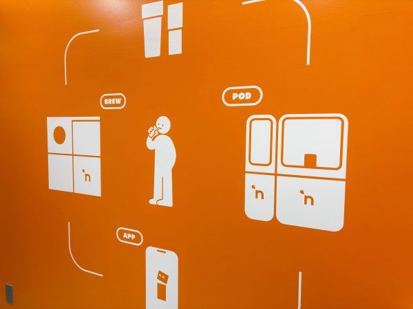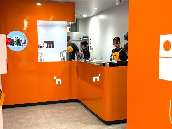 ドリンク体験を、味だけでなく五感でも楽しめるようにと、店内はポップなオレンジを基調としたデザインに。