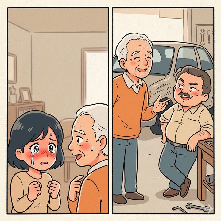 自分の衰えを認めず、その場しのぎのズルをしてでも車にしがみつこうとする父。