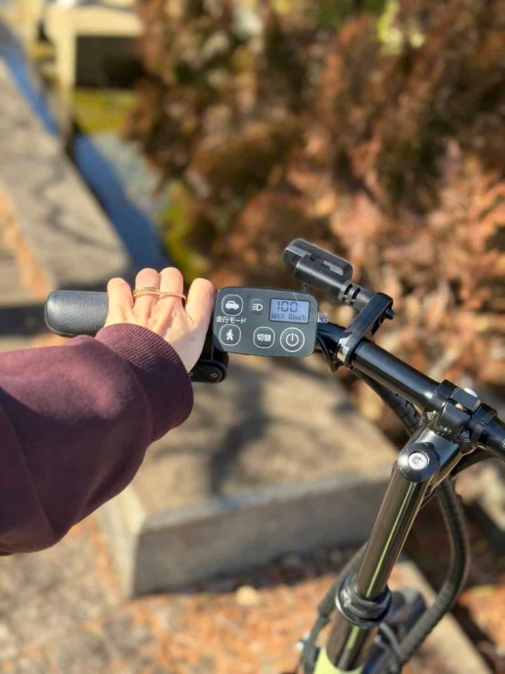 パナソニックのEZシリーズ艶消しマットブラックに、前カゴとボトルホルダーをカスタムしています。ヨガ帰りにそのまま近所へお買い物にも行けるように、トップスはゆったり、ボトムは暖かい裏起毛レギンスでこなれ感のある楽ちんコーデにしてみました。荷物も乗せられて実用性を確保しつつ、コンパクトで乗りやすい、毎日の生活に欠かせない私の相棒です!