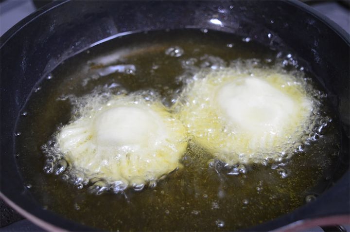 5. 油でこんがりときつね色になるまで揚げたら完成。