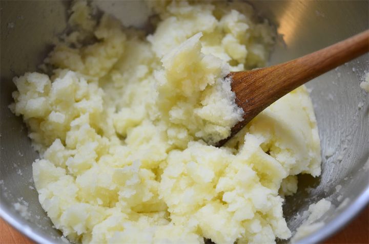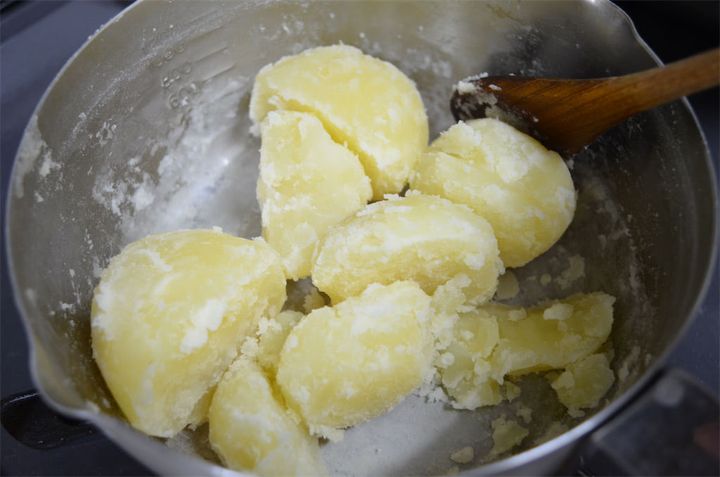 今回は、小麦粉を70gほど入れました。じゃがいもの水分量によって小麦粉の量が変わりますので、その都度調整してください。