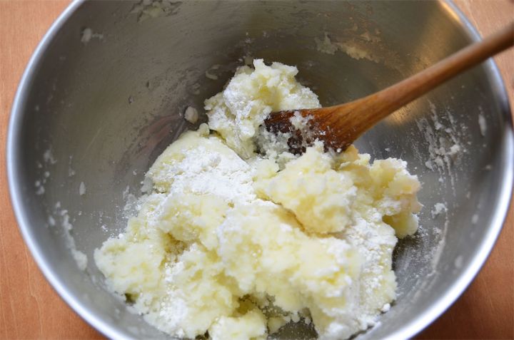 2. 潰したじゃがいもに小麦粉(分量外)を加えて、生地が手に付かなくなるまでしっかり混ぜる。モチモチとした感触になったら生地の完成。