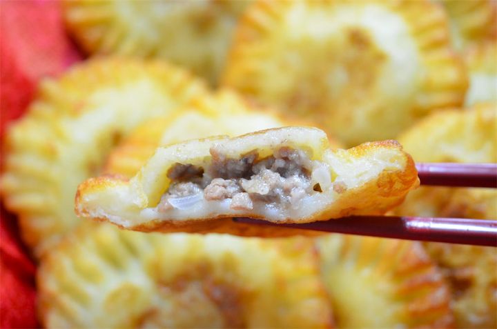 お、この味は…ピロシキだ!食感はモチモチしていてちょっとお餅みたいです。中の具が塩とこしょうのシンプルな味付けなので、じゃがいもの甘味が際立っていてスナック感覚で食べられます。中のひき肉はオムレツの具のような味なので、もしひき肉がが余ったら、卵と一緒に炒めてもおいしそうですよ♪