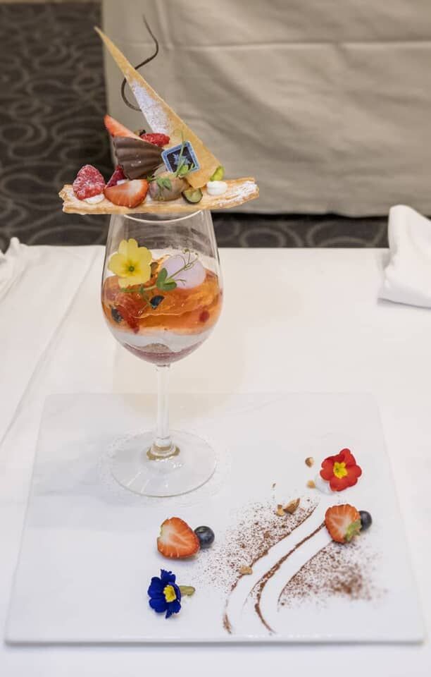 芦ノ湖を見下ろす高台に建つ小田急 山のホテル[ラウンジ]では、グラスの上にパイを乗せ、湖を遊覧する箱根海賊船をモチーフにしたパフェ「パイレーツ」(¥2,600)を用意。桜のアイスやジュレなど湖の春を閉じ込めたパフェを味わいながら、優雅なひと時を過ごせます。