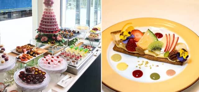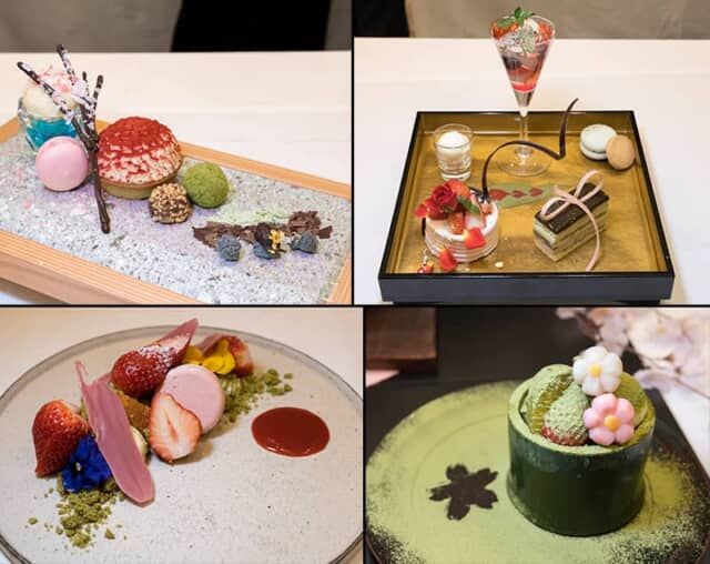 箱根ホテル小涌園のビュッフェレストラン フォンテンブローでは、「小涌園からのおくりもの」(¥2,200)でツツジをイメージしたタルトやブルーラグーンのゼリーで日本庭園 “蓬莱園” を表現。箱根小涌園にある三河屋Cafeの「宝玉箱[ドリンク付]」(¥1,800)は、繊細な作りのケーキやゼリーが見事です。鈴廣かまぼこの里 名水甘味 且座 shazaの「春の苔パフェ スイーツコレクションver.」(¥1,650)には鈴廣のふわふわ卵焼き “海のすふれ” を忍ばせ、苔を思わせる緑の絨毯と桜の模様がアクセント。ハイアット リージェンシー 箱根 リゾート&スパでは、果物やスイーツを飾るアート作品のような「タルト プランタニエール」(¥1870)に箱根の春を込めています(コーヒーまたは紅茶付は¥2,370)。サービス料別。