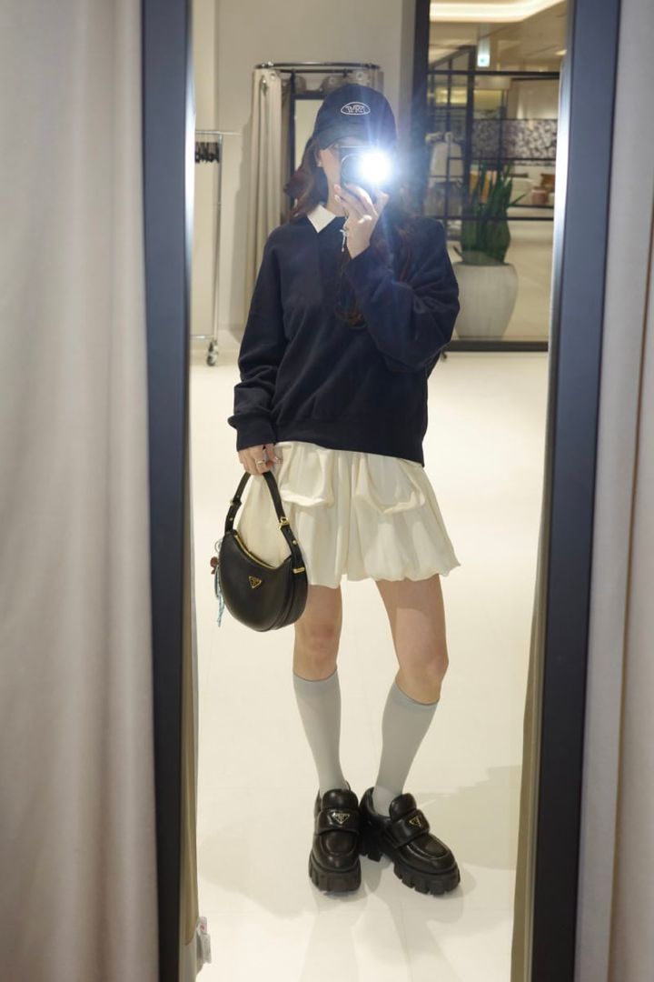3. 【30代スナップ】ユニクロのスウェット&シャツが活躍! バルーンミニスカとあわせて韓国風スタイルに