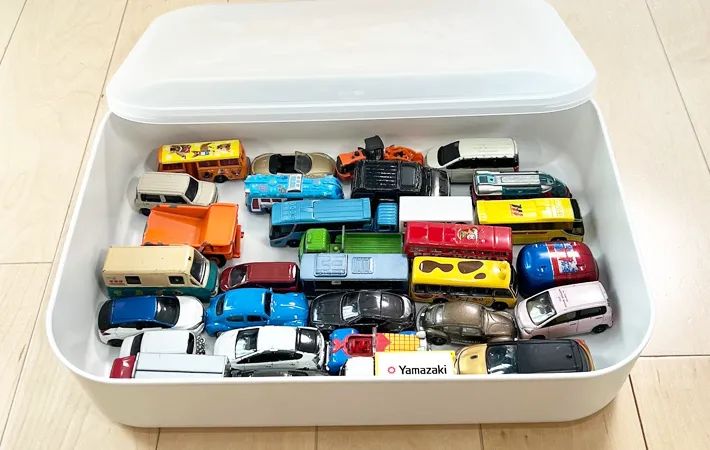 こちらもサイズ展開が豊富で、浅いタイプはミニカーや積み木などの細かいオモチャを入れるのにピッタリ。