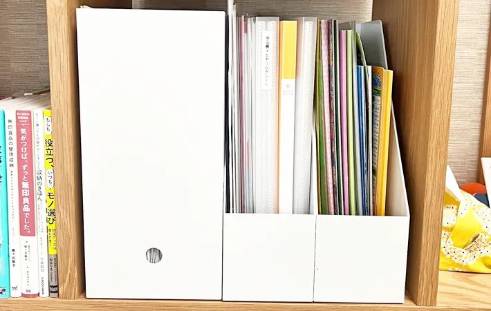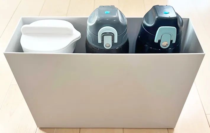 斜めにカットされていない『ファイルボックススタンダードタイプ』は、書類などの紙類だけでなく、水筒や食品ストックなどの収納にも使えます。