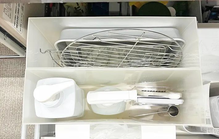 パントリーやキッチンの引き出しにたくさん入れて分類して使うと、何がどこに入っているかが分かりやすくなりますよ。