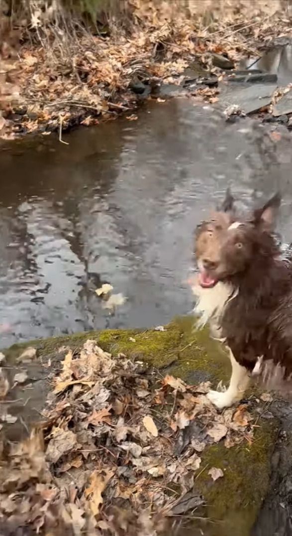 水辺に立ち、振り返ってきているのは撮影者さんの愛犬。 この子は、撮影している飼い主さんと『ある遊び』をしている最中でした。