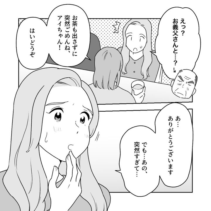 突然の報告に驚く私に、義母は「お茶も出さずに突然ごめんね、アイちゃん!はいどうぞ」と笑顔でお茶を出してくれたのですが、私は「あ・・ありがとうございます。でも・・あの、突然すぎて・・」と戸惑いを隠せませんでした。