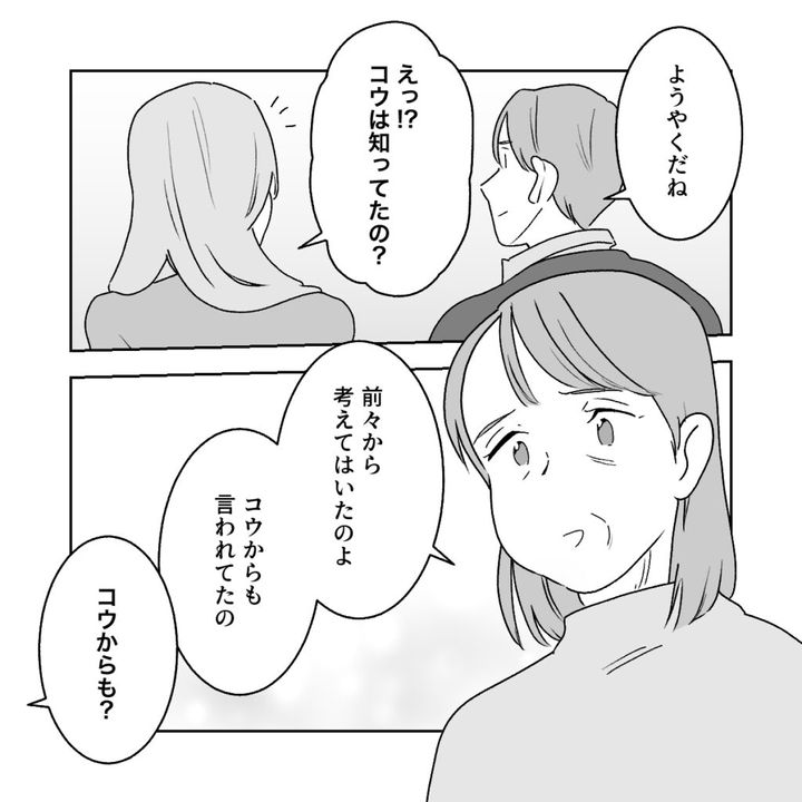 すると、隣に座っていたコウが「ようやくだね」と感慨深げに言ったのです。「えっ!?コウは知ってたの?」と驚いていると、義母が「前々から考えてはいたのよ。コウからも言われてたの」と穏やかに言いました。