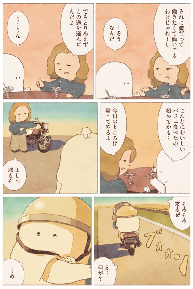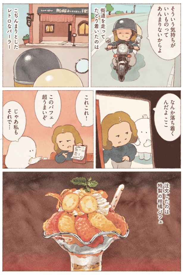 高校時代の友人と偶然再会。バイクに乗せてもらい隣町のレトロなパーラーへ/おばけのおいしいひとり旅⑨