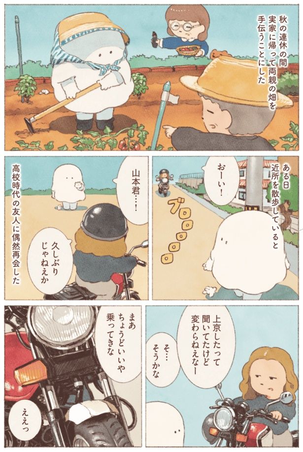 3. 高校時代の友人と偶然再会。バイクに乗せてもらい隣町のレトロなパーラーへ/おばけのおいしいひとり旅⑨