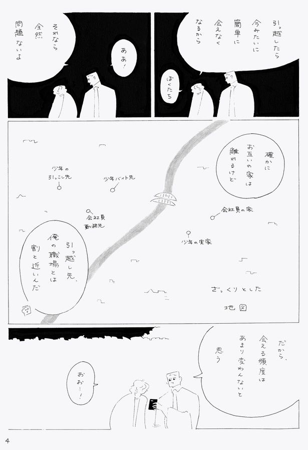 シンプルな描写ながらも、少年や会社員の表情や気持ち、体温が伝わってくるようなセリフが散りばめられた創作漫画「夜の告解」。心をギュッと掴まれたり、不安になったり、安堵したり…彼らに寄り添うことで、自分も大切にできる。そんな物語をお届けします。