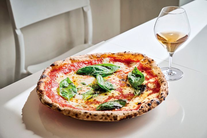 「マルゲリータ500」にはオレンジワインを合わせたい。 撮影=高嶋佳代