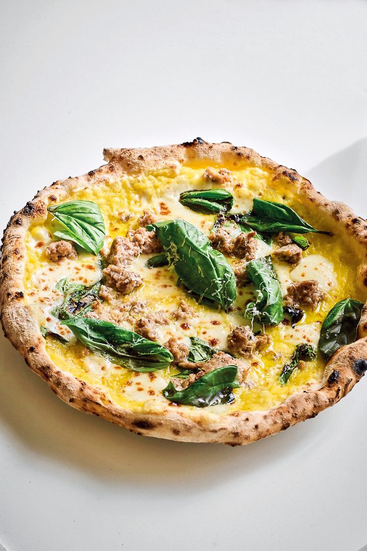 一枚に使う小麦は230gと多めだが、軽い食感。ピザ「サルシッチャ/卵/柑橘」2,900円。 撮影=高嶋佳代