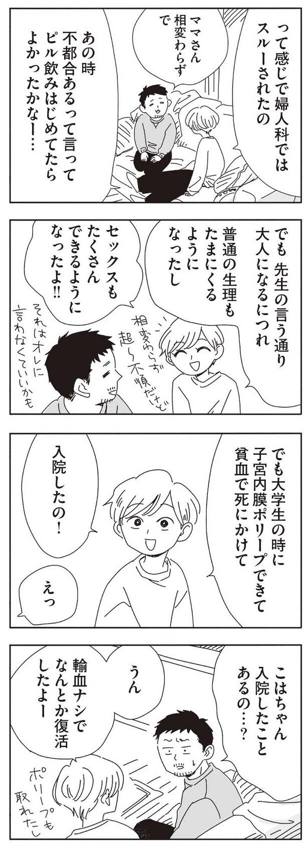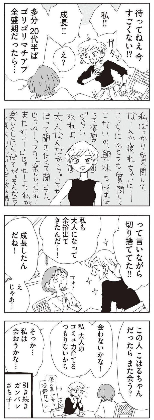 仕事を終えた20時過ぎに、それは始まる。なにげない、でも濃すぎるアラサー女子たちの報告会。慎重派なこはる、短期決戦の女りさこ、バランサーのきみちゃん他、アラサー女子たちの悩みは今日も尽きない——。「妊活」「結婚生活の不満」「パートナーとの日常生活」など、たくさん悩んで、たくさん話して、決断を迫られる彼女たちに共感したりハッとさせられること間違いなし! アラサー女子のリアルが詰まった赤裸々話が盛りだくさんの大人気ガールズトーク漫画『20時過ぎの報告会』(1~5巻)。大好評だった1~4巻に続いて、2月18日発売の最新刊5巻から、新たなエピソードをお届けします。