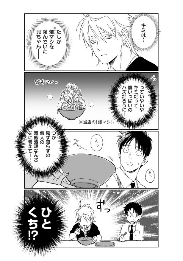 爆盛りラーメンを完食できずピンチ! 追い込まれたサラリーマンに救世主登場/ラーメン屋に並ぶお兄さん達をBLにしたい話①