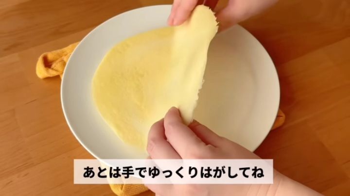 冷ましていた1枚目の生地をラップからはがします。