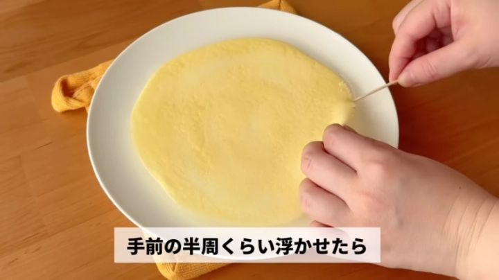 つまようじなどで生地の外側の端を少しずつ浮かせましょう!