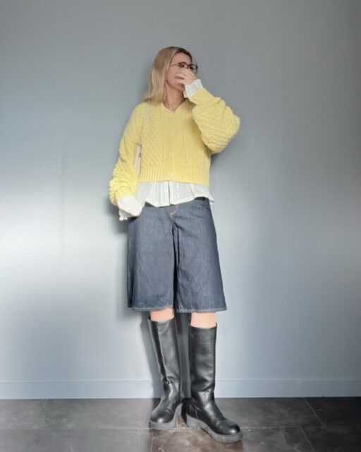 春になると着たくなるきれい色のトップスもショート丈を選ぶだけで新鮮に。イエローのショートカーディガン×白シャツの重ね着なら通勤コーデにも取り入れやすいですよ。休日のお出かけにはハーフパンツを合わせて今シーズンらしく仕上げてみては。