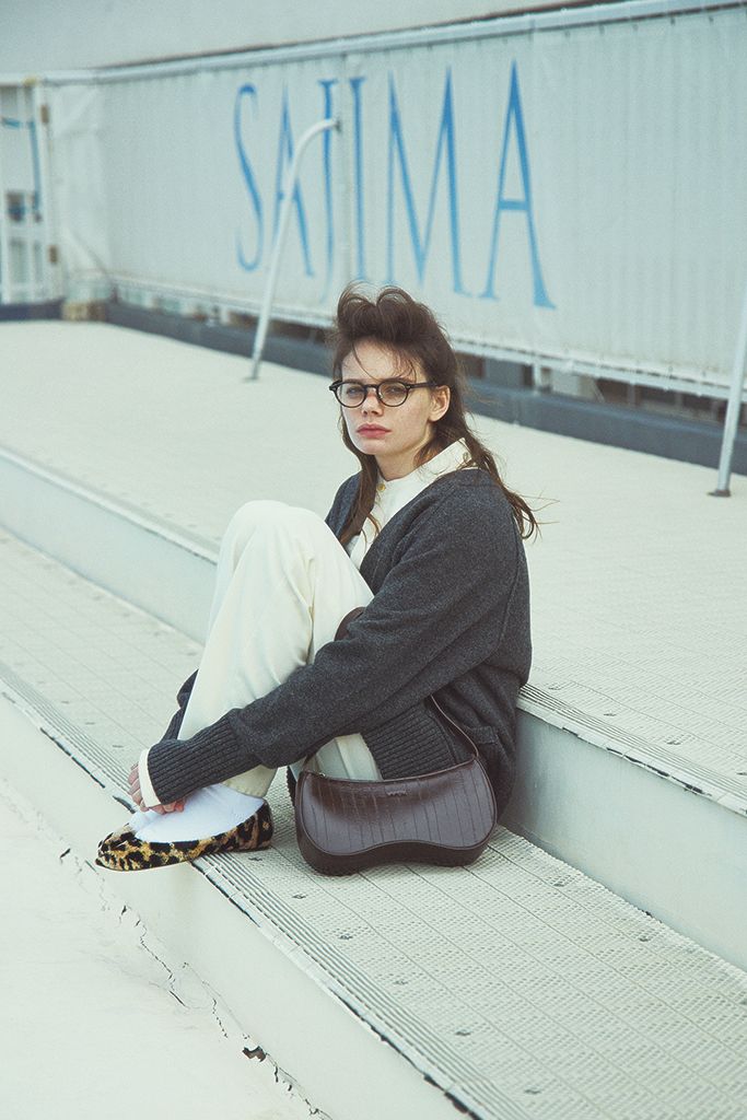 着飾りたいわけではないけれど、シンプルな装いには少し華やかさが欲しいから。毛並みで映える、シャギーな黒を肩にかけて目立たず埋もれずの、ひかえめなデコレーション。
