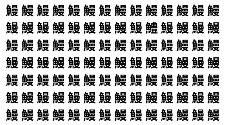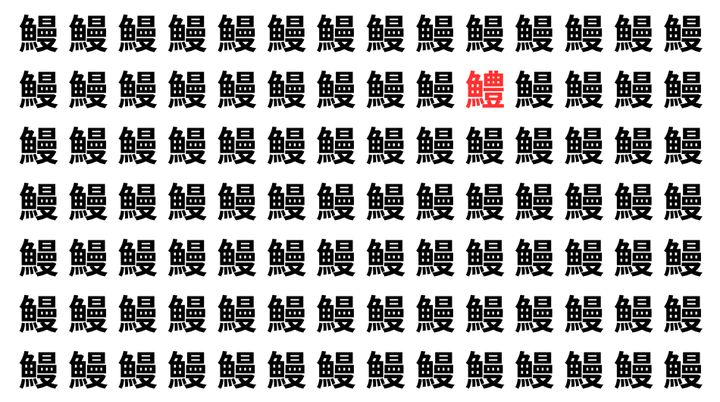 たくさんの「鰻」の中に、よく似た別の漢字が1文字だけ隠れています。