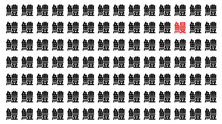 たくさんの「鱧」の中に、よく似た別の漢字が1文字だけ隠れています。
