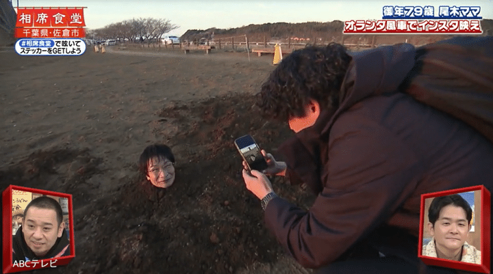 当の尾木ママはというと、「ピースしたいのに手が出せない~」「あっら~この絵だけで価値あるぞ~」「おかしすぎる~」「冥土の土産よ」とほのぼの。無事に(?)撮影を終えると、スタッフたちに救出されて一安心だ。のちに、「穴の中がきつかった~」「重いのよ、土が。どんどん体温を奪っていくの」「あと20分経ったらあの世に行っているわよ」などと笑顔で振り返った。