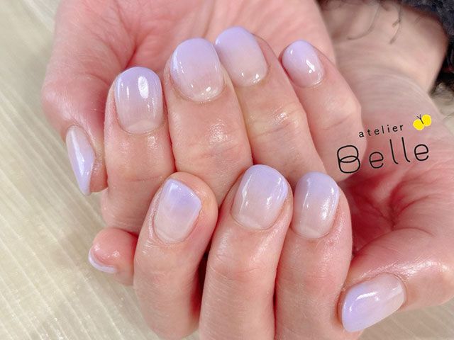 クリアベースにパステルの優しいパープルのネイルカラーをグラデーション!