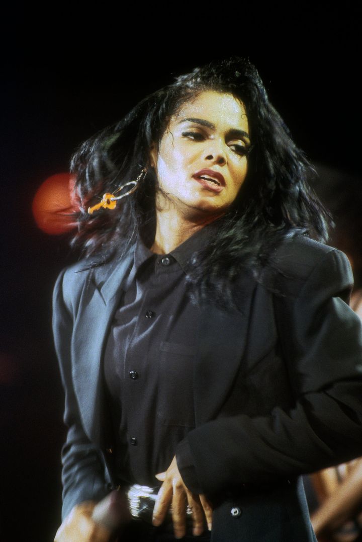 1990年、「リズム・ネイション」ツアーでパフォーマンスを披露するジャネット・ジャクソン。 Al Pereira / Getty Images