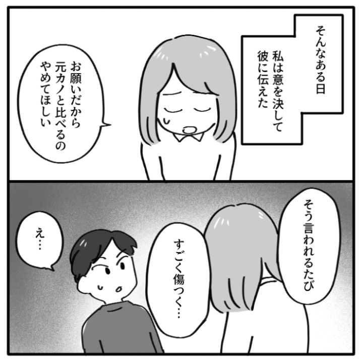 「元カノと比べられたくないなら成長しろよ」お店の予約や作った料理などなんでも元カノと比較してバカにする彼氏!傷つくと伝えても反省するどころか、ますます悪化