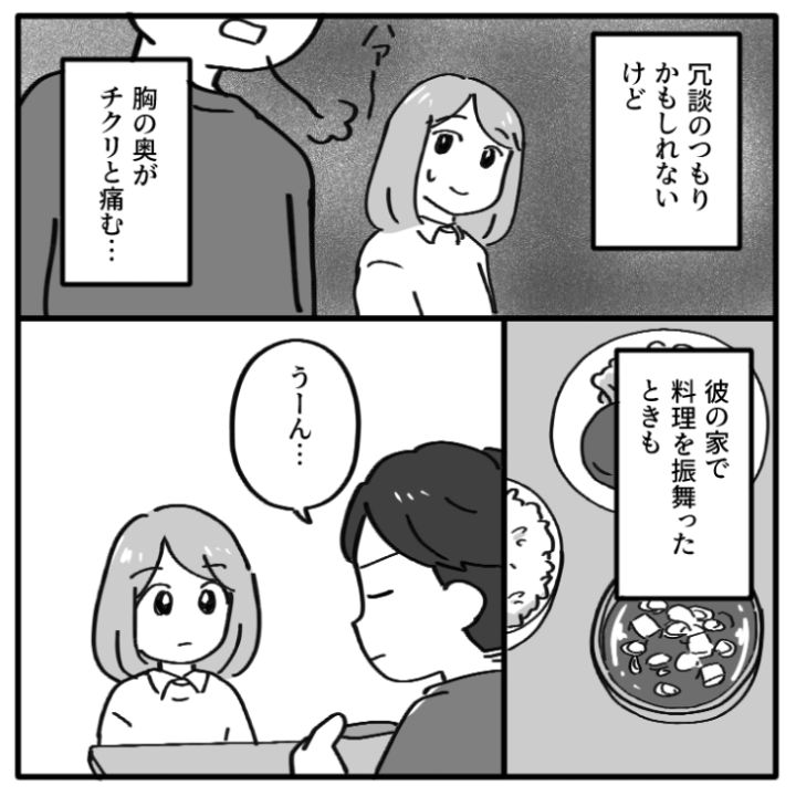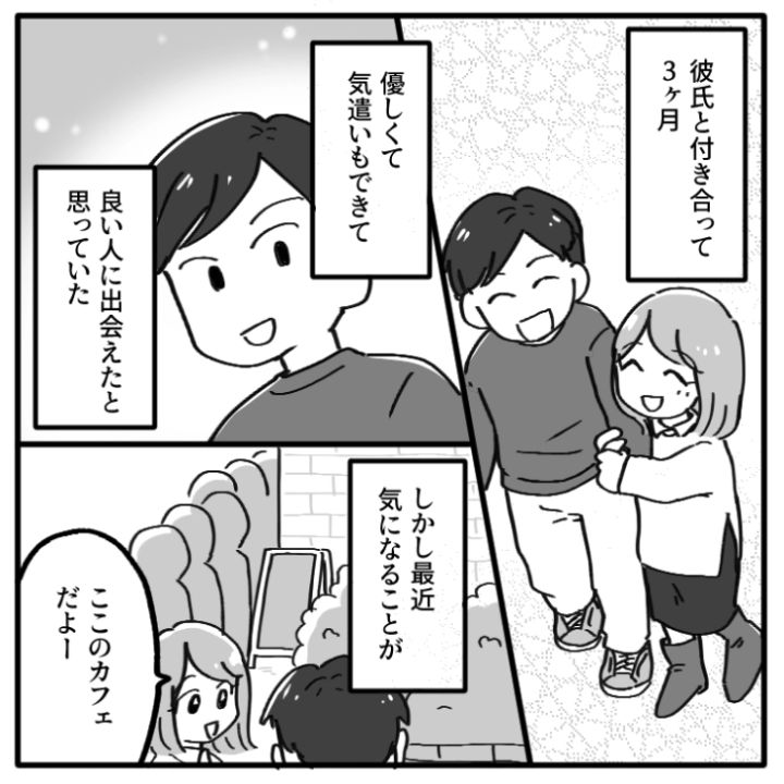 主人公は今の彼氏と付き合い始めて3ヶ月。最初は優しい彼氏をどんどん好きになっていったのですが、最近どうしても気になることがあり・・・。