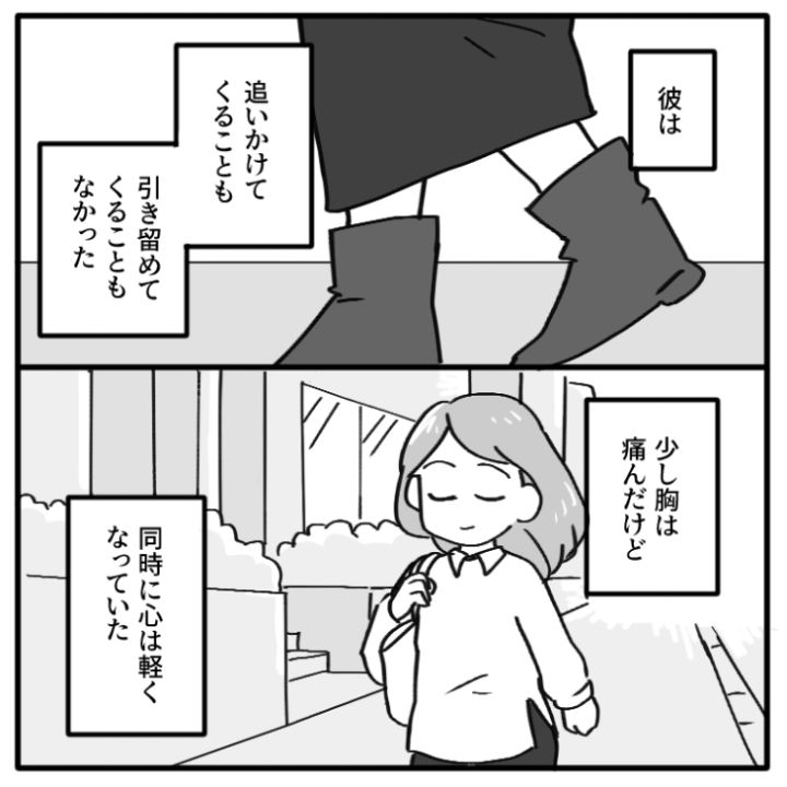 傷ついていると言っている主人公の気持ちを無視して心ないことを言い続けた彼氏に別れを告げた主人公でした。