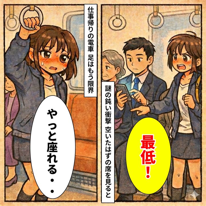 「やっと座れる」満員電車で目の前の席が空いた→座ろうとすると突如男性が走り込んできたワケ【短編小説】