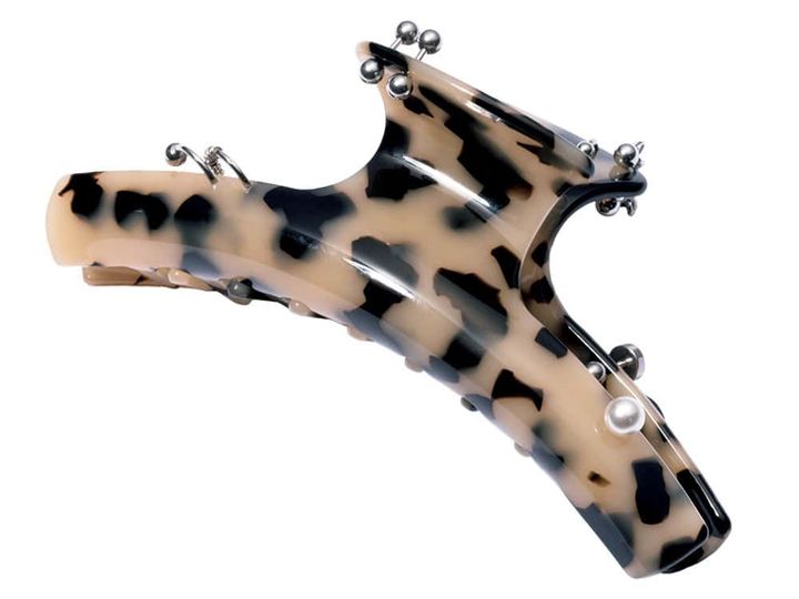 ビッグサイズが目を引くバレッタはピアスみたいなチャームがロックで可愛い! 簡単なまとめ髪がササッと完成して気分も上がる、こんなヘアアクセをひとつ持っておくと安心です。
