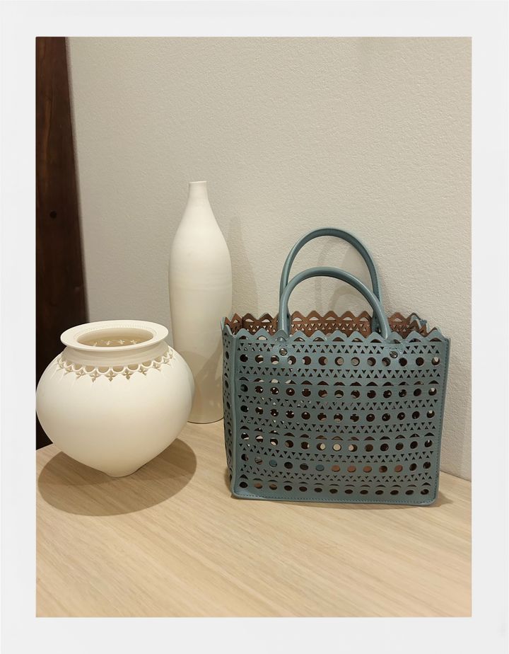 このレーザーカットのハンドバッグは、私にとって初めてのアライアのアイテム。パリのボン・マルシェで購入しました。このバッグの明るくプレイフルな色彩と、ひと目でそれとわかる美しさは、まさにアイコニック。流行を追いかけるのではなく、それでいて“今”を確実にとらえているところにも惹かれました。
