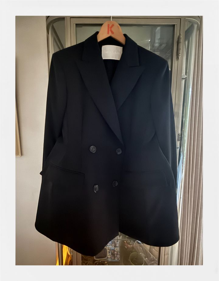 約3年前に購入したマイランのジャケット。端正な肩のラインとシェイプされたウエスト、クリノリンを入れてふくらませたように広がる構築的なペプラムのシルエットにひとめぼれしました。ほどよく詰まった胸開きと華奢なラペルが女性らしい品を醸し出す、秀逸なデザインです。