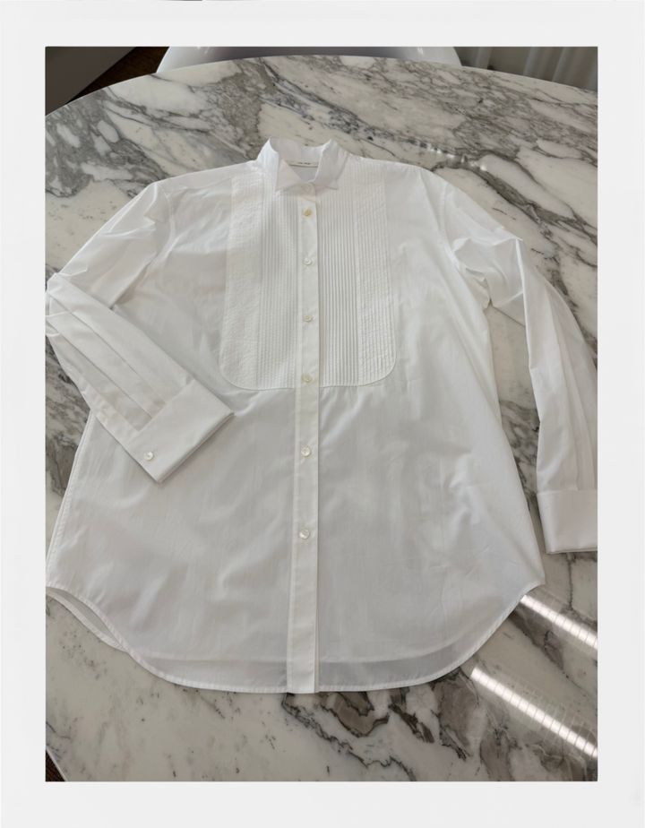 日本で購入した、2026年春夏シーズンのドレスシャツ。もともと白シャツが好きですが、なかでも惹かれるのはドレスシャツです。シンプルなものほど、素材や縫製の誠実さがそのまま表れる。この一枚は、余計な主張がないからこそ美しさが際立ち、思わず手に取りました。