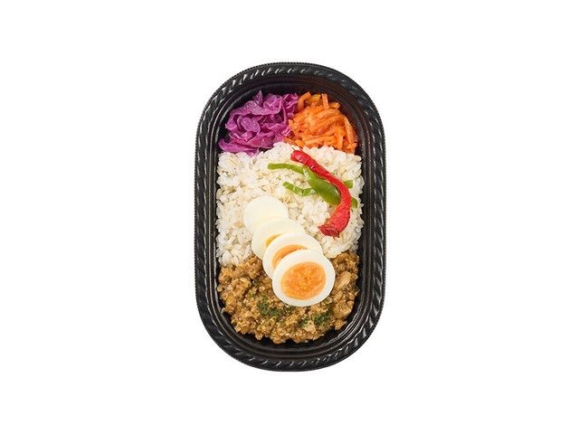 ナンプラーを使用した本格的な味わいが楽しめる鶏のガパオライスに、レッドキャベツマリネ、キャロットラぺを添えました。 取り扱い店舗 全エリア