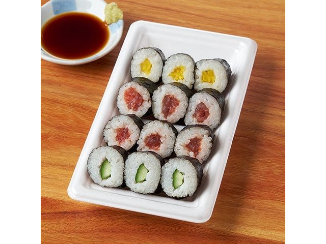 鉄火巻など3種類の巻寿司が楽しめる、一口サイズのお寿司セットです。